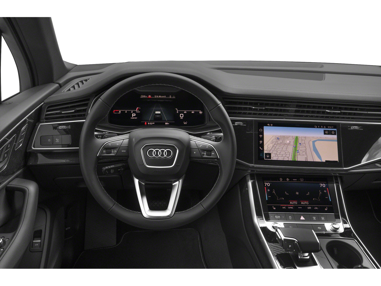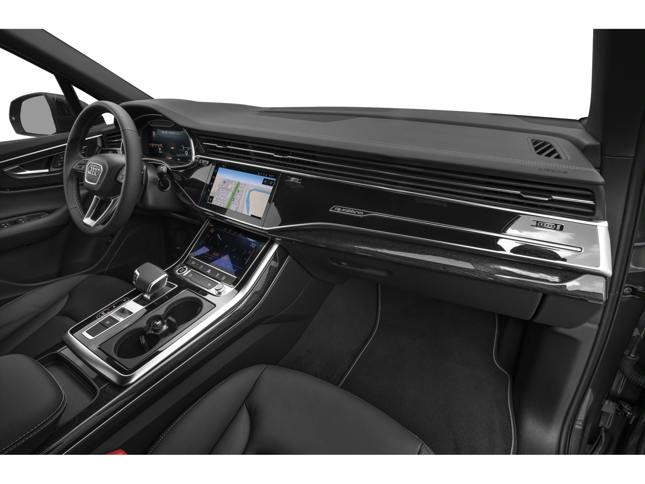 THIS VEHICLE HAS THE FOLLOWING FEATURES AND OPTIONS:10 Speakers, 3rd row seats: bench, 4-Wheel Disc Brakes, ABS brakes, Air Conditioning, Alloy wheels, AM/FM radio: SiriusXM w/360L, Auto High-beam Headlights, Auto-dimming door mirrors, Auto-dimming Rear-View mirror, Automatic temperature control, Brake assist, Bumpers: body-color, Compass, Delay-off headlights, Driver door bin, Driver vanity mirror, Dual front impact airbags, Dual front side impact airbags, Electronic Stability Control, Emergency communication system: Audi connect CARE, Exterior Parking Camera Rear, Four wheel independent suspension, Front anti-roll bar, Front Bucket Seats, Front Center Armrest, Front dual zone A/C, Front fog lights, Front reading lights, Fully automatic headlights, Garage door transmitter: HomeLink, Genuine wood door panel insert, Heated door mirrors, Heated Front Bucket Seats, Heated front seats, Illuminated entry, Leather Seating Surfaces, Leather Shift Knob, Leather steering wheel, Low tire pressure warning, Memory seat, Navigation system: Audi MMI Navigation plus with Touch Response, Occupant sensing airbag, Outside temperature display, Overhead airbag, Overhead console, Panic alarm, Passenger door bin, Passenger vanity mirror, Power door mirrors, Power driver seat, Power Liftgate, Power moonroof: Panoramic, Power passenger seat, Power steering, Power windows, Radio data system, Radio: Audi Sound System, Rain sensing wipers, Rear air conditioning, Rear anti-roll bar, Rear fog lights, Rear reading lights, Rear seat center armrest, Rear side impact airbag, Rear window defroster, Rear window wiper, Reclining 3rd row seat, Remote keyless entry, Security system, Speed control, Speed-sensing steering, Split folding rear seat, Spoiler, Steering wheel memory, Steering wheel mounted audio controls, Tachometer, Telescoping steering wheel, Tilt steering wheel, Traction control, Trip computer, Turn signal indicator mirrors, Variably intermittent wipers, and Wheels: 19 5-Arm-Star Design.