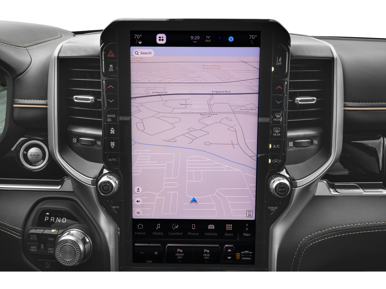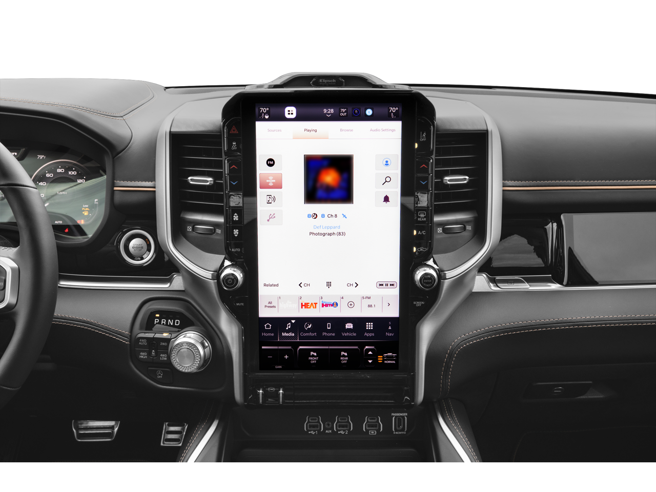 Step inside and you'll be greeted by a wealth of comfort and convenience features, including dual-zone automatic climate control, a premium leather-wrapped steering wheel, and a state-of-the-art Uconnect 5 infotainment system with a stunning 14.4-inch display. The heated and ventilated front seats, along with the heated rear seats, ensure you and your passengers can enjoy a luxurious and comfortable journey, no matter the weather.